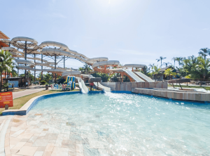 Destaca-se por ser um ambiente moderno e vibrante, focado em recreação para crianças e espaços de relaxamento para adultos, como piscinas de águas termais e spa. Localizado próximo ao parque, ele oferece um excelente custo-benefício para quem deseja aproveitar uma infraestrutura de lazer completa e animada após o dia de diversão. Vale ressaltar que os hóspedes deste resort também possuem o benefício do acesso gratuito e ilimitado ao parque aquático Hot Beach durante todo o período da sua hospedagem.