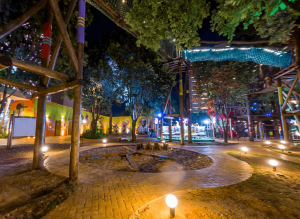 O complexo Hot Beach também inclui a Vila Guarani, um espaço com entretenimento noturno e programação cultural. Entre as atividades estão apresentações musicais, espetáculos temáticos e eventos familiares que complementam a experiência de turismo e lazer.