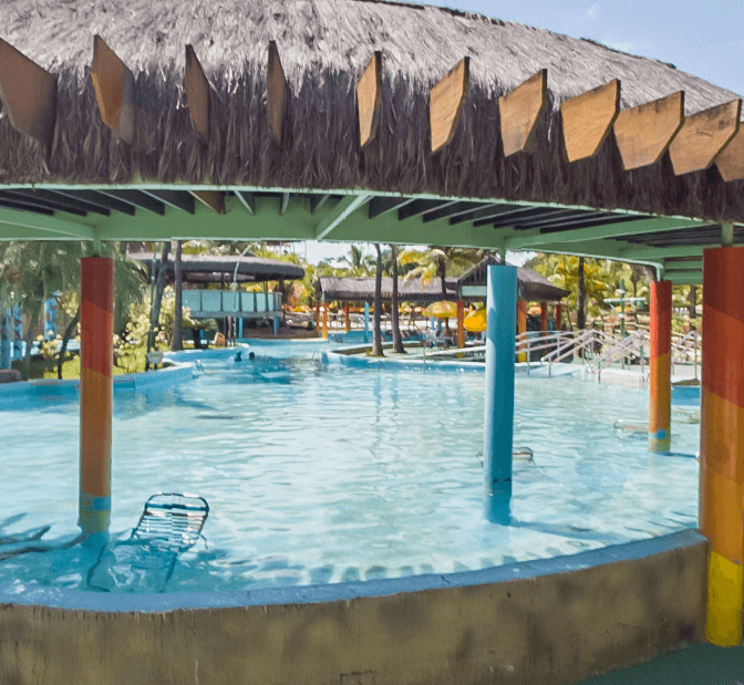 As áreas de relaxamento do Thermas dos Laranjais são a parte do parque que muita gente subestima, mas que pode transformar o passeio em uma experiência bem mais confortável. Em um parque aquático grande, descansar é tão importante quanto brincar, especialmente em dias quentes e com muita caminhada. Aqui entram opções como piscinas mais tranquilas, áreas com jatos d’água e atrações de ritmo lento, que ajudam a recuperar energia sem sair do clima de lazer. Para casais e famílias, esses espaços também são ótimos para conversar e curtir o ambiente sem correria.